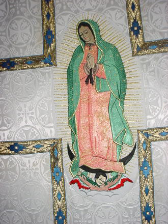 ![]() CLICK IMAGE FOR LARGER VIEW | Traditional Lady of Guadalupe VESICA Beautifully embroidered vesica is available to put on any of our vestments you would like to order. We can put this on either Roman & Gothic style. Ideal for any Marian vestment, to put on white, blue, gold or Rose brocade. Vescias are sold only on our vestments. They are NOT sold separately. | $50 |