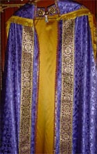 TRADITIONAL COPE This is only one of many examples of the different styles and colors of copes we make. Available in ALL colors. Fully lined in satin, gold plated broaches. All made of elegant brocade material and orphery bandings. |
