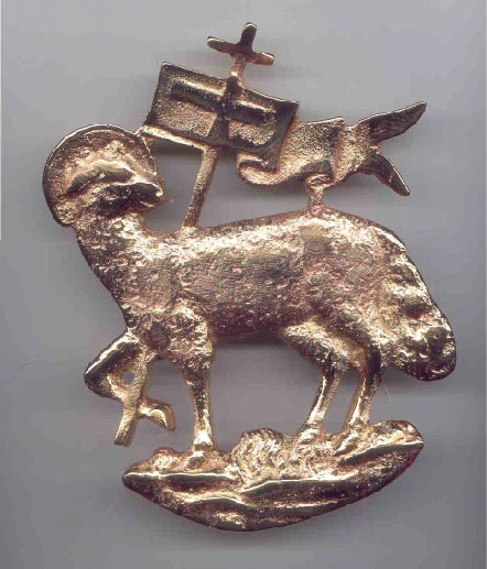 Angus Dei tabernacle door relief Made of solid cast brass, gold plated. Approximately 7 " square. Ideal for the door of a small tabernacle.