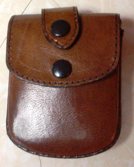 LEATHER CASE FOR PYX OR ROSARY OR CHANGE PURSE New genuine leather carrying case. It is all hand made in our quaint little shop. This carring case is ideal for a PYX, or a ROSARY. or as a change purse or to keep your bus & subway tokens handy. It has a snap button strap on the back to loop on to your belt. The case is 3 3/4" long x 2 1/2" wide , 1 " thick. Available in Brown as shown, or Black. Ideal for use by priest or deacon for sick call and hospital visitation to bring communion. Makes a nice gift for a priest who appreciates good quality. |