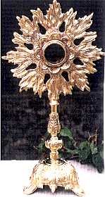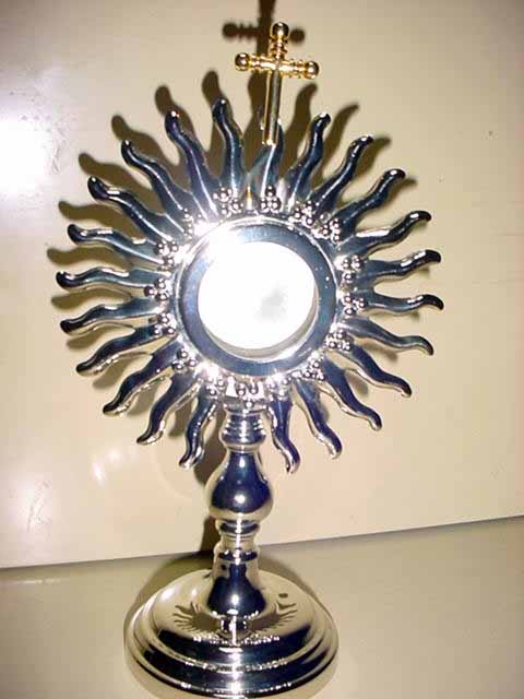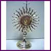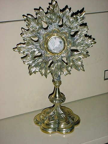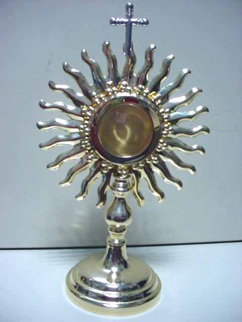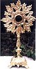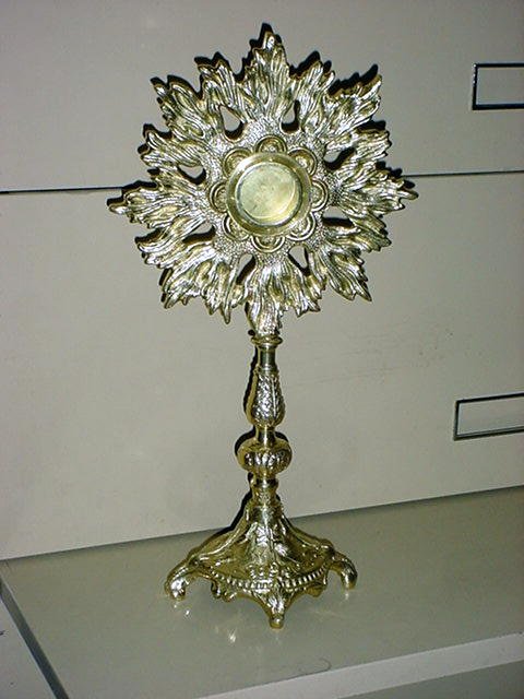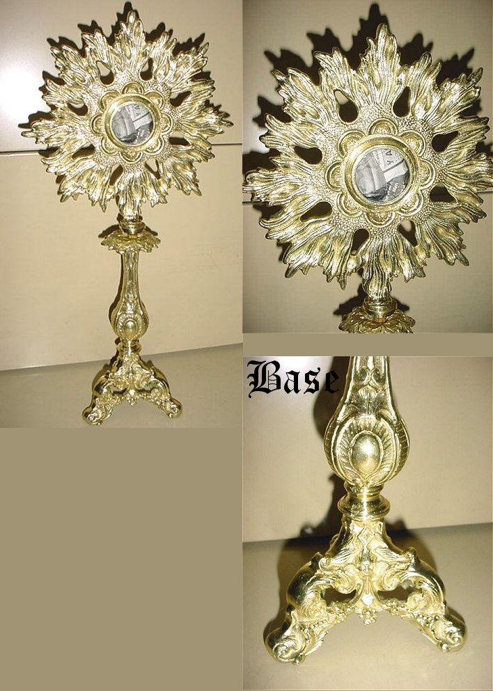 SUNBURST RELIQUARY Solid cast brass sunburst reliquary. Stands 16" tall. Opening is 1 3/4" diameter. |